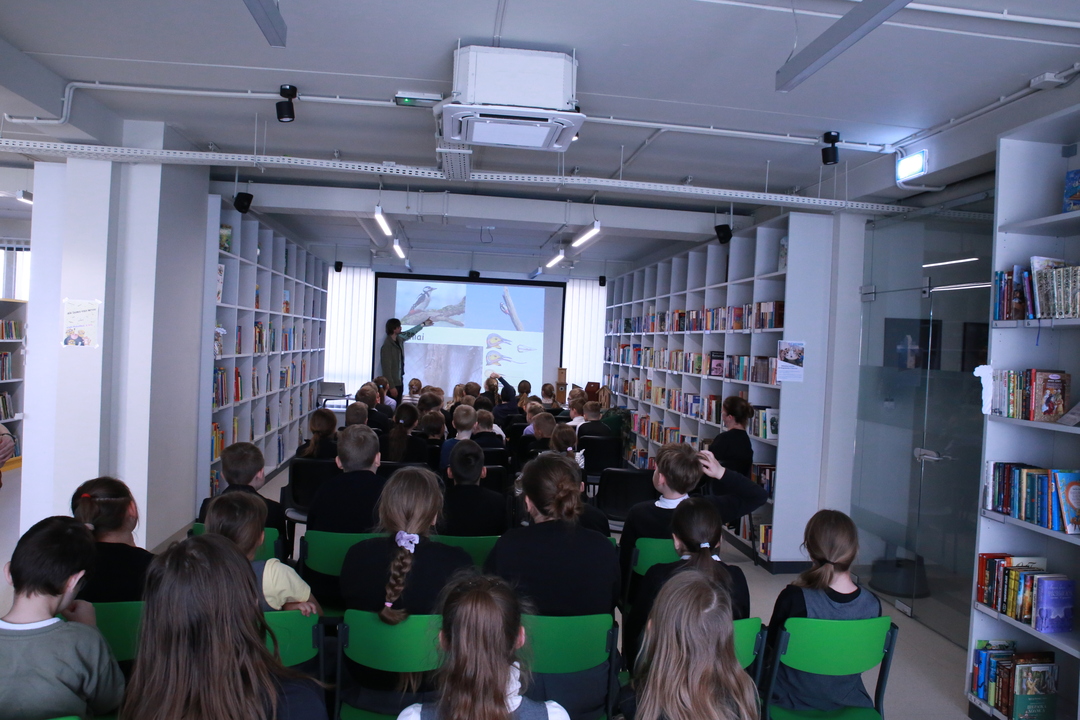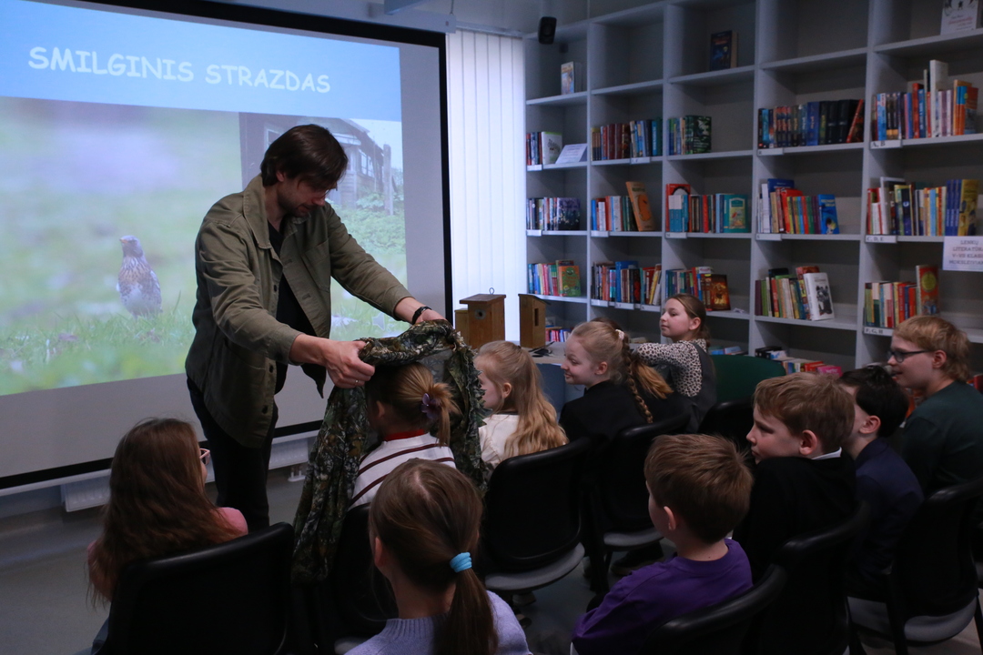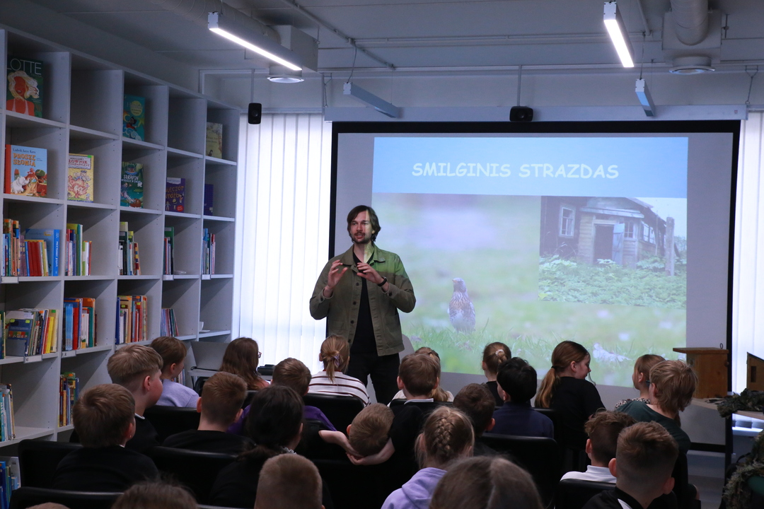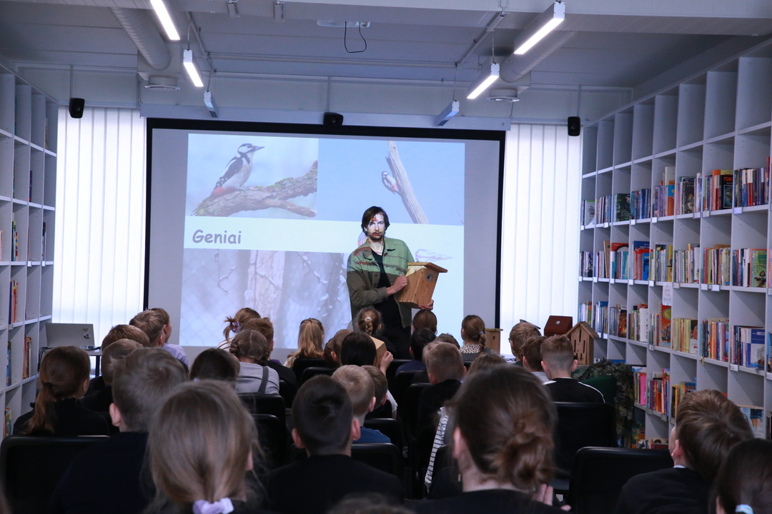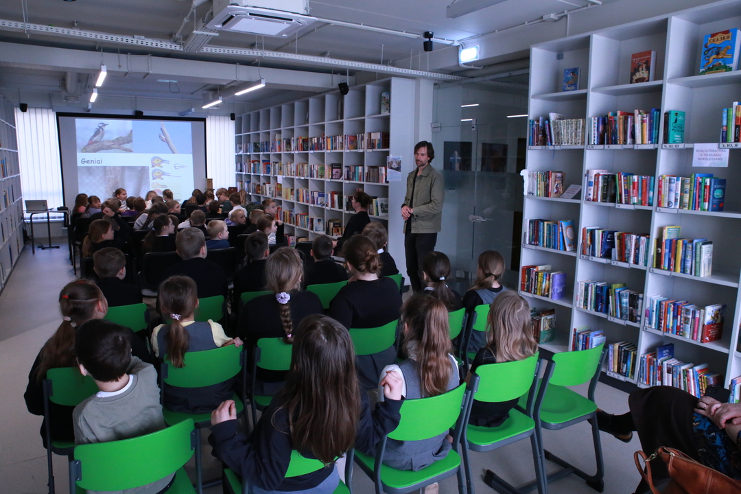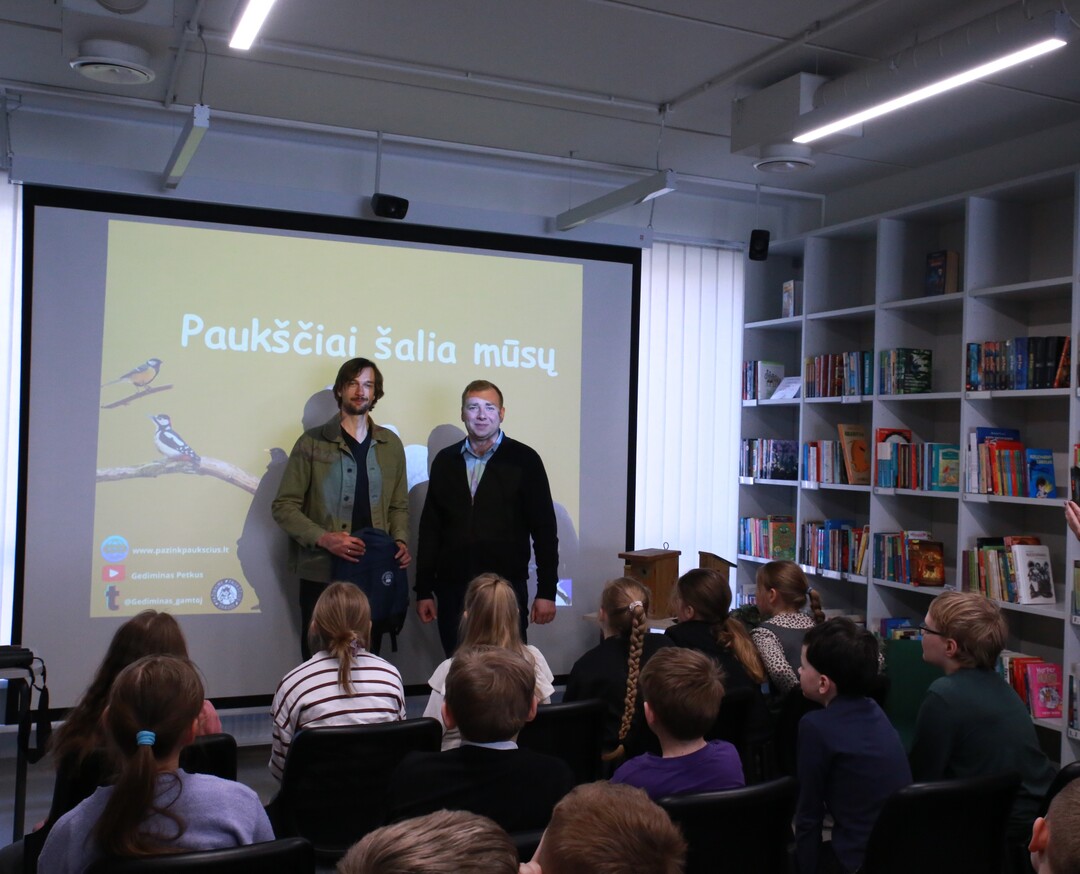 Nacionalinė Lietuvos bibliotekų savaitė Vilniaus rajono savivaldybės Centrinėje bibliotekoje tęsiasi kupina atradimų – šį kartą čia lankėsi žinomas ornitologas Gediminas Petkus, surengęs įtraukiančią edukaciją Rudaminos „Ryto“ gimnazijos trečiokams. Susitikimo metu svečias mokiniams entuziastingai pasakojo apie paukščių gyvenimo ypatumus bei gamtos saugojimą, demonstravo įvairius inkilus ir mokė pažinti sparnuočių pasaulį. Didžiausią įspūdį vaikams paliko praktinė užduotis: kiekvienas gavo profesionalius žiūronus, kuriais naudodamiesi jaunieji tyrinėtojai galėjo patys stebėti aplinką, ieškoti paukščių ir iš arti pajusti pavasarojančios gamtos grožį.