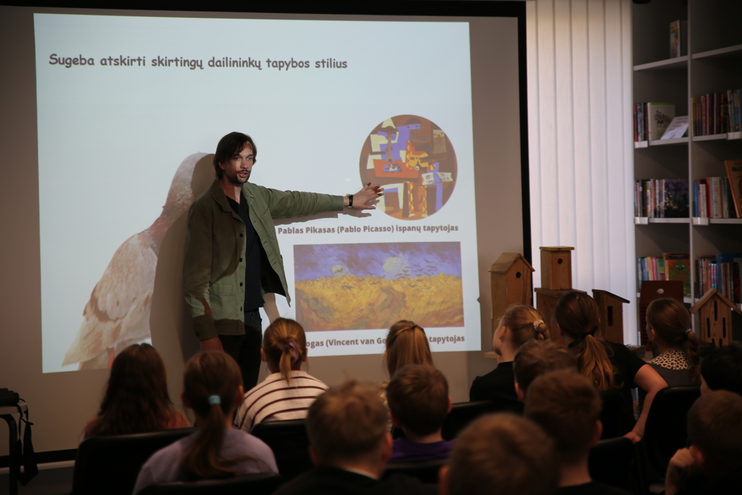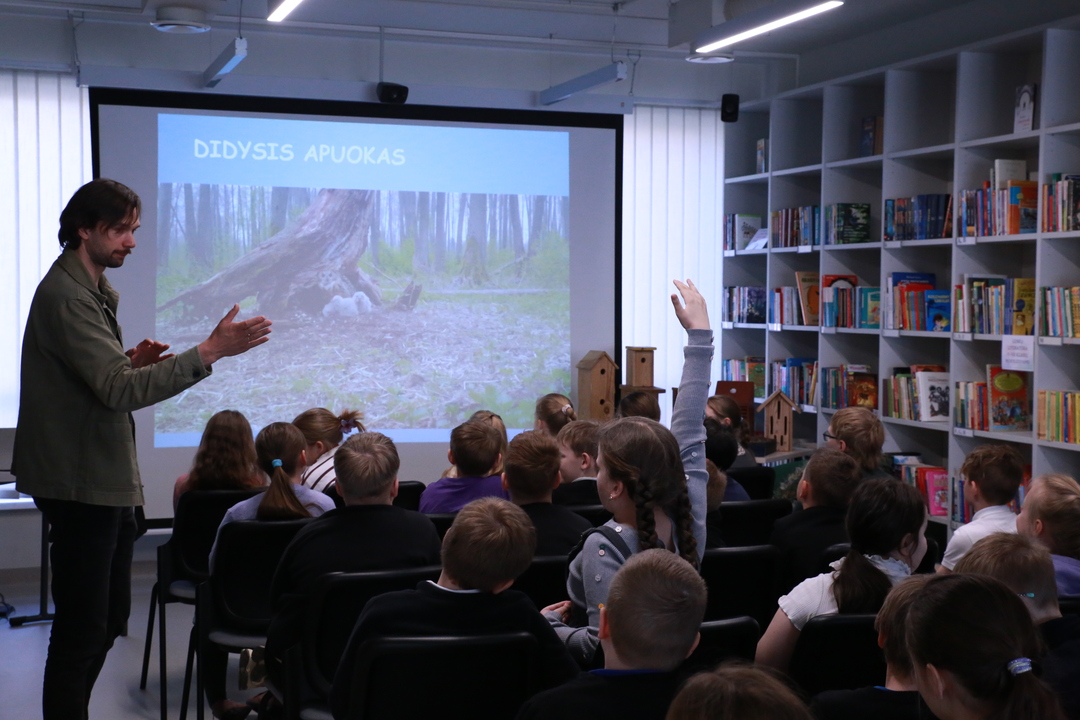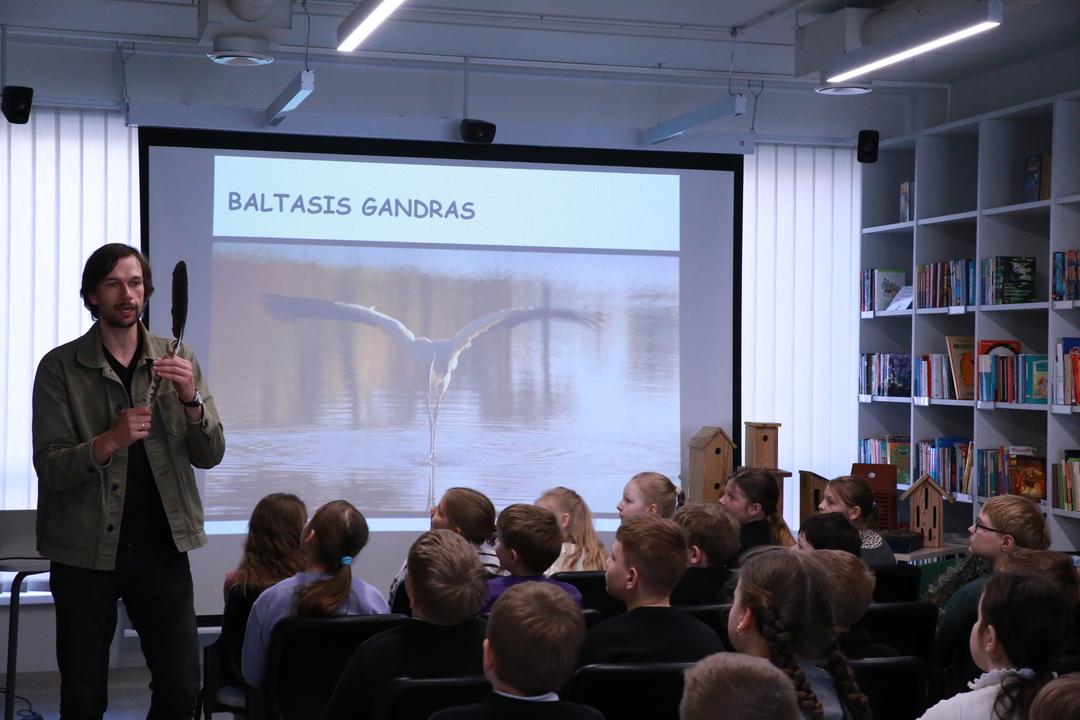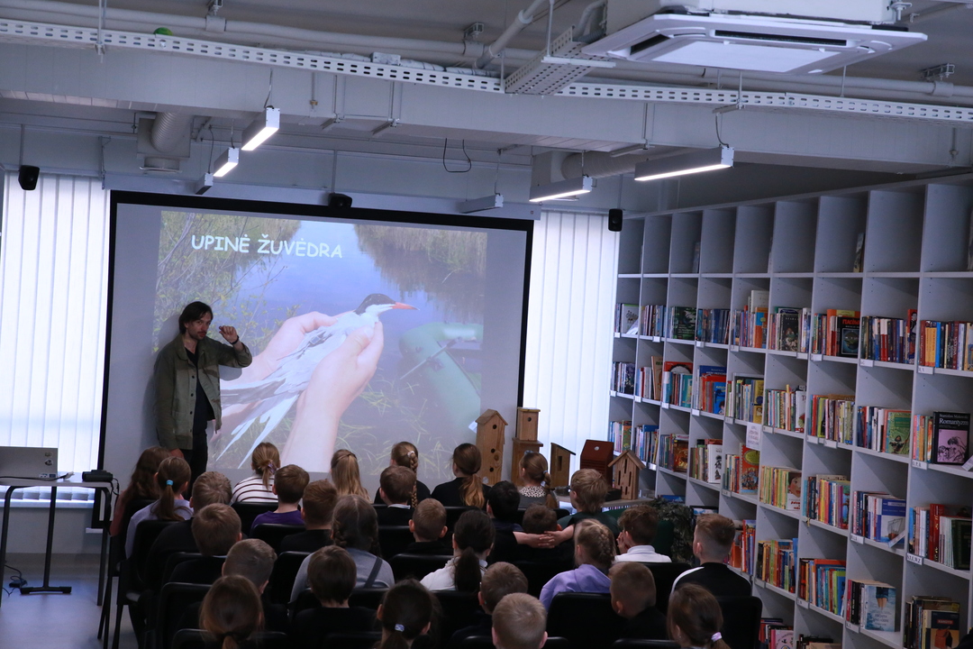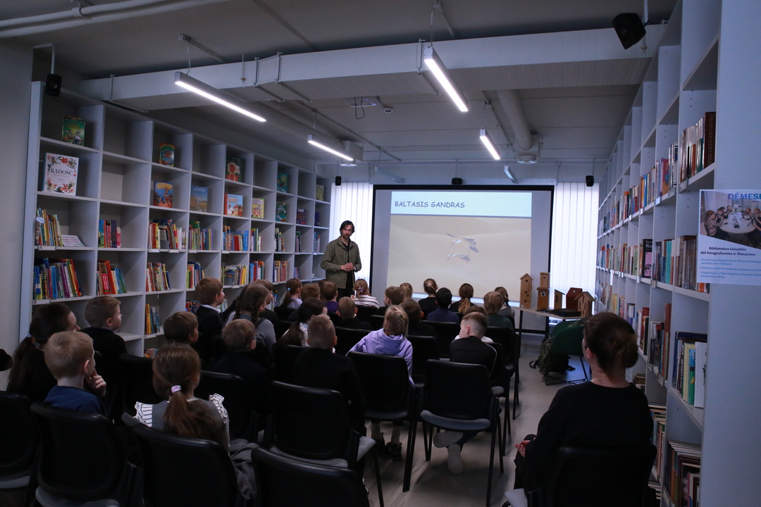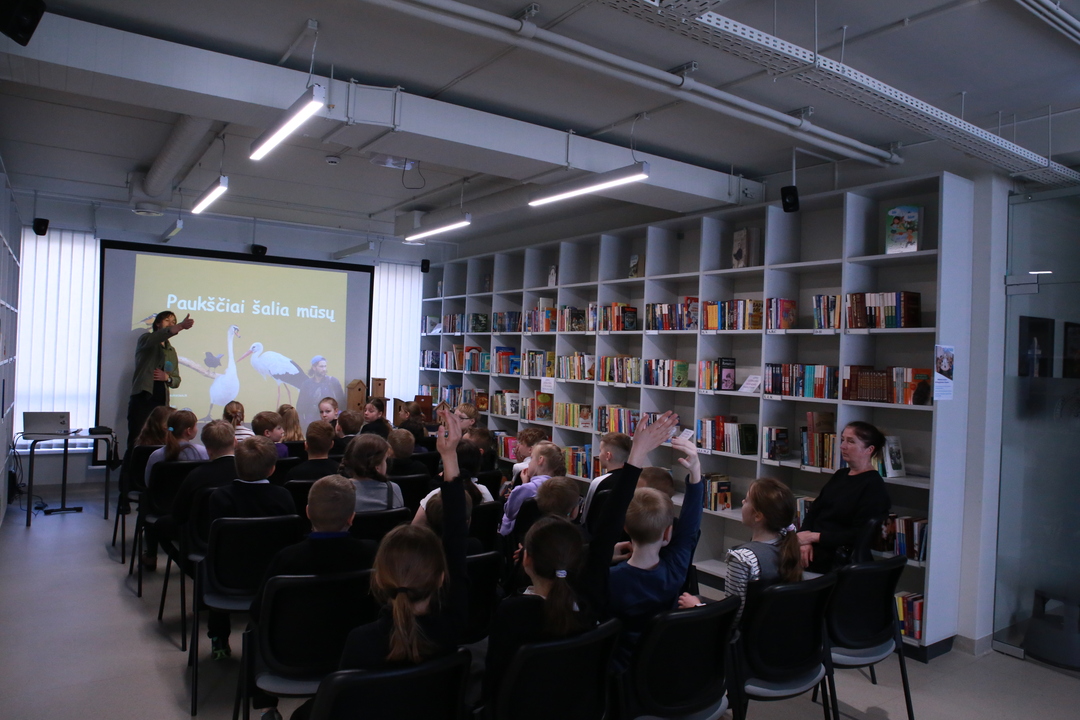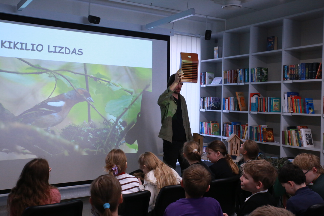 Nacionalinė Lietuvos bibliotekų savaitė Vilniaus rajono savivaldybės Centrinėje bibliotekoje tęsiasi kupina atradimų – šį kartą čia lankėsi žinomas ornitologas Gediminas Petkus, surengęs įtraukiančią edukaciją Rudaminos „Ryto“ gimnazijos trečiokams. Susitikimo metu svečias mokiniams entuziastingai pasakojo apie paukščių gyvenimo ypatumus bei gamtos saugojimą, demonstravo įvairius inkilus ir mokė pažinti sparnuočių pasaulį. Didžiausią įspūdį vaikams paliko praktinė užduotis: kiekvienas gavo profesionalius žiūronus, kuriais naudodamiesi jaunieji tyrinėtojai galėjo patys stebėti aplinką, ieškoti paukščių ir iš arti pajusti pavasarojančios gamtos grožį.