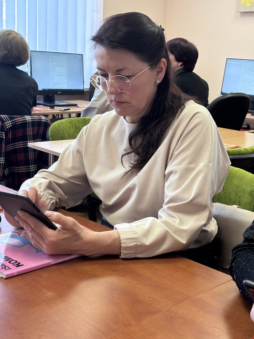 Istotną częścią szkoleń były zajęcia praktyczne – uczestnicy pracowali zarówno na własnych urządzeniach, jak i na tabletach udostępnionych przez bibliotekę. Nie zabrakło także dyskusji i wymiany doświadczeń – uczestnicy chętnie zadawali pytania i wspólnie poszukiwali rozwiązań codziennych problemów związanych z korzystaniem z internetu.